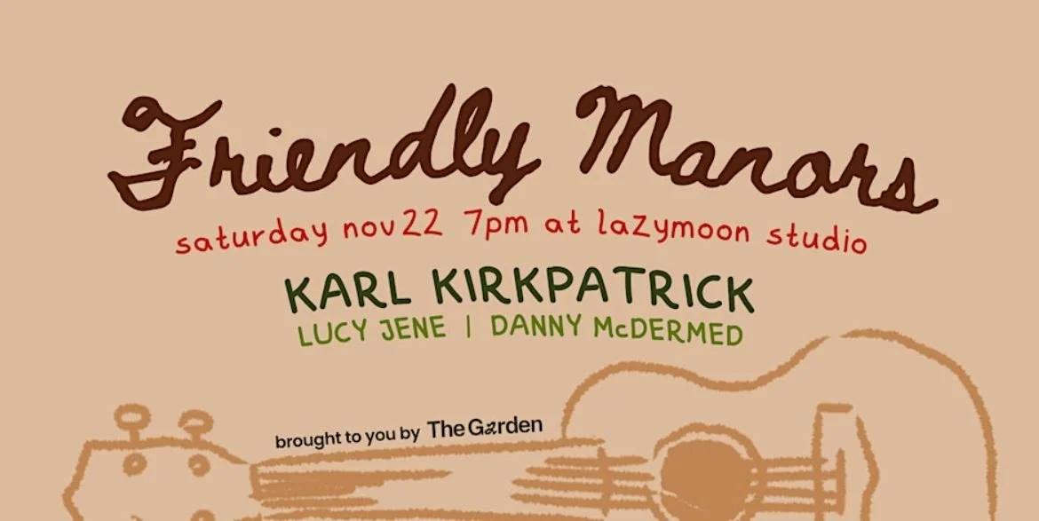 The Garden brings you a lovely evening of acoustic music. Danny McDermed, Lucy Jene, and Karl Kirkpatrick bring the tunes and Lazymoon Studio brings the vibes. Come and make some new friends, find some new fav songs, and discover a new spot.